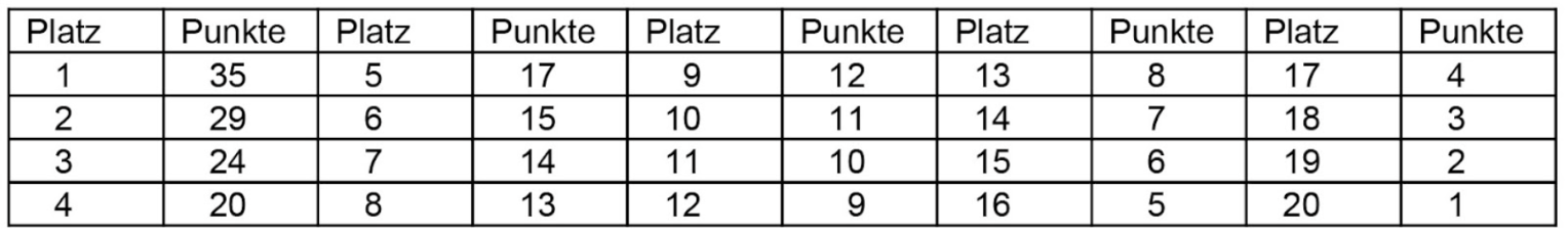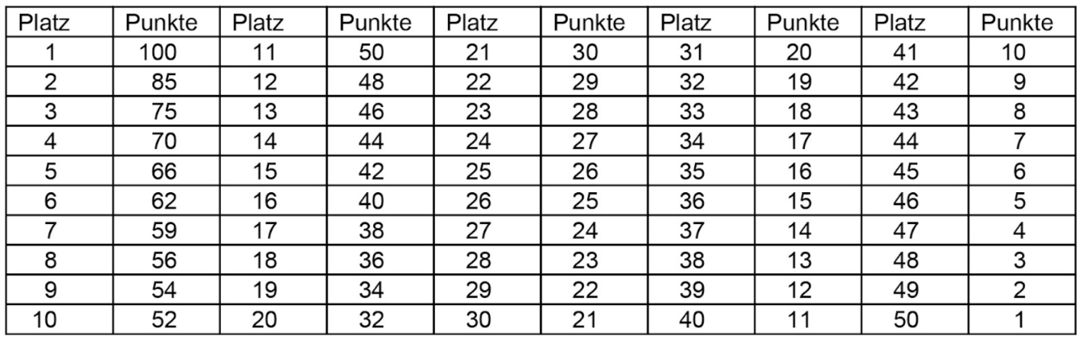 Punktevergabe für die Gesamtwertung: